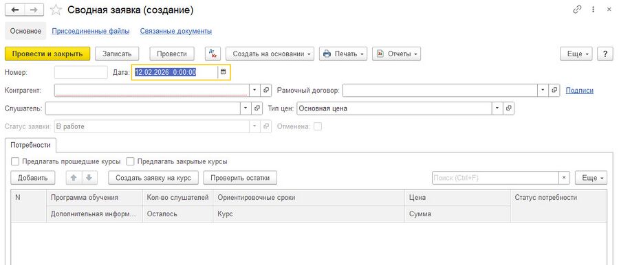 Работа с заявками юридических лиц в 1С:УУЦ
