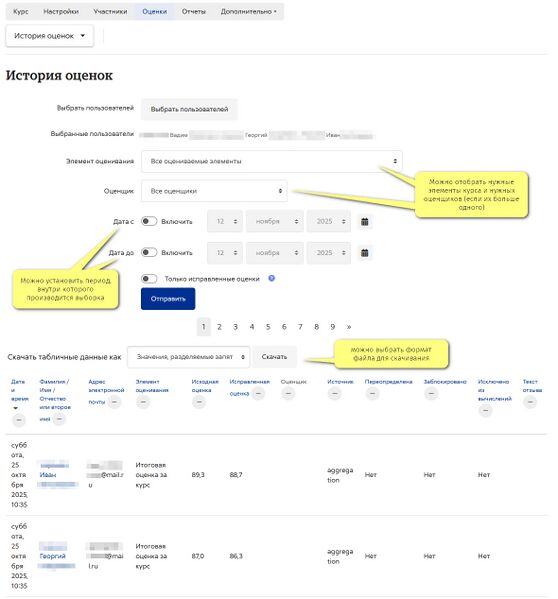 История оценок
