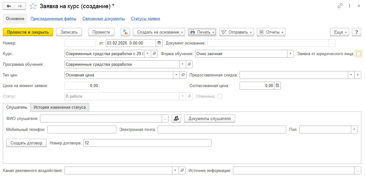 Пример заявки на курс